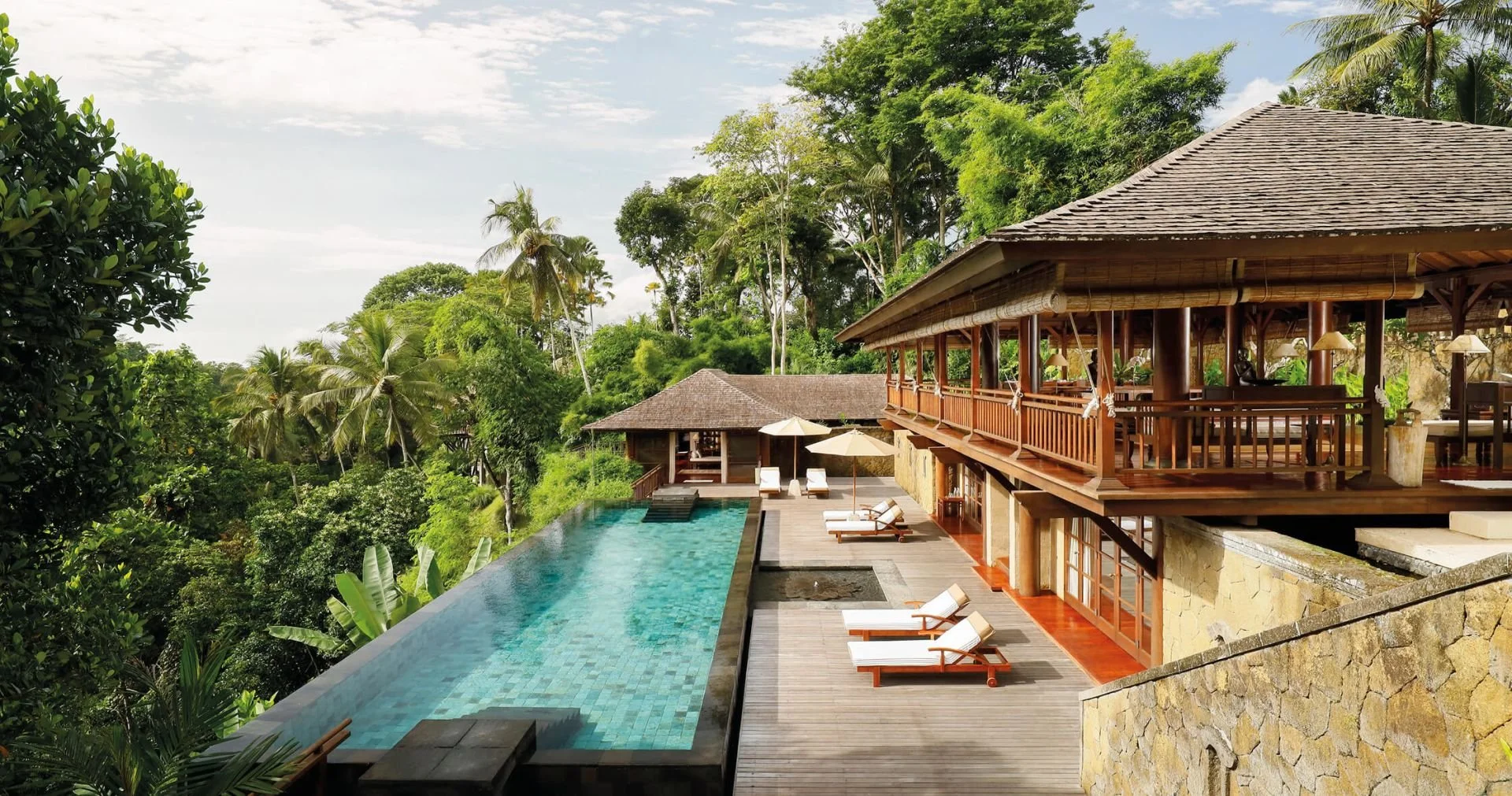 Das Wellness-Refugium liegt in der Nähe von Ubud, eingebettet in eine Lichtung über einer dschungelbedeckten Schlucht zwischen den Flüssen Ayung und Bayad.