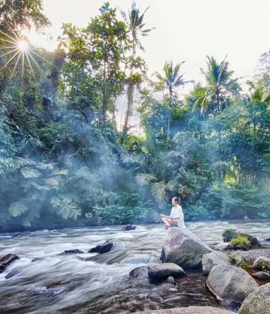 Der Wellness-Ansatz unseres Anwesens wurzelt in unserer einzigartigen Lage: eine Dschungel-Enklave in Bali über einem reißenden Fluss, mit einer Quelle, die das Mineralwasser liefert. Wir arbeiten mit der Natur zusammen, um immersive Erlebnisse zu bieten.