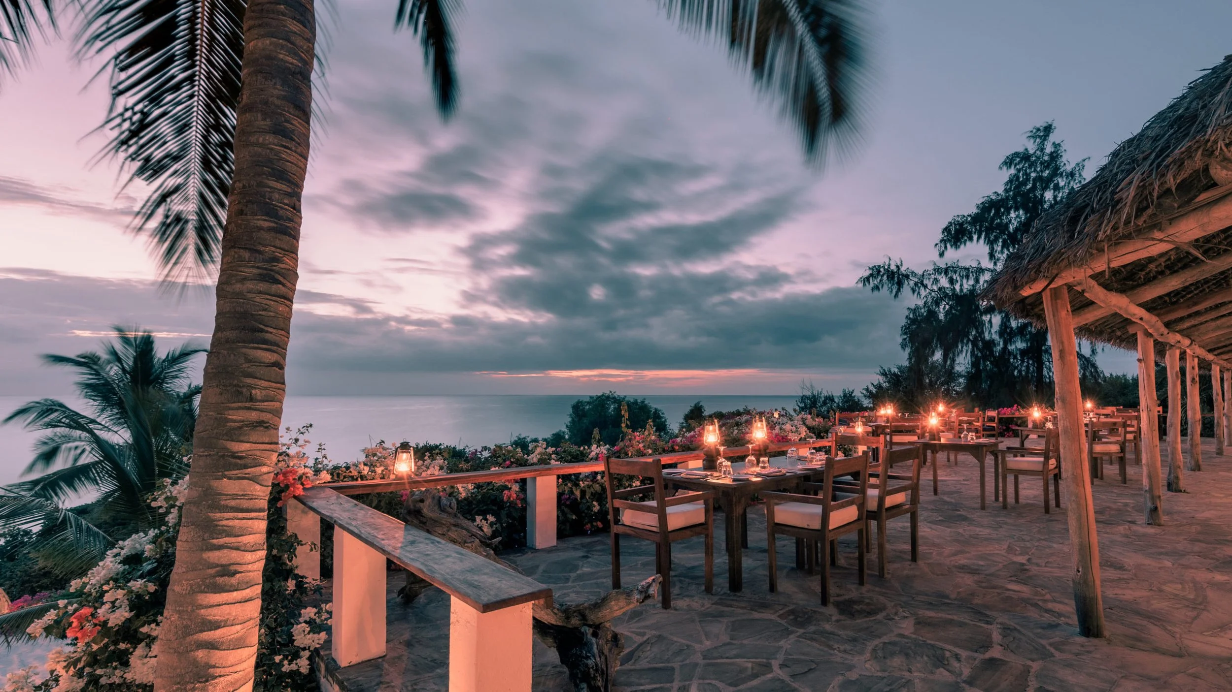 Vom Frühstück mit Pfannkuchen, Spiegeleiern, Speck, frischem Obstteller, tansanischem Kaffee – bis zum Mittag- und Abendessen. Die meisten Mahlzeiten werden hier serviert, aber manchmal werden sie auch auf die Poolterrasse und den Strand verlegt.